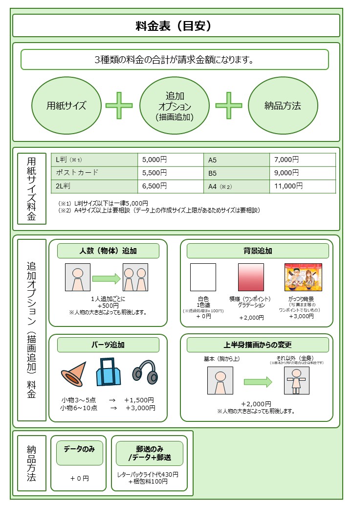 下記は、似顔絵制作をご依頼していただく際にご参考ください!